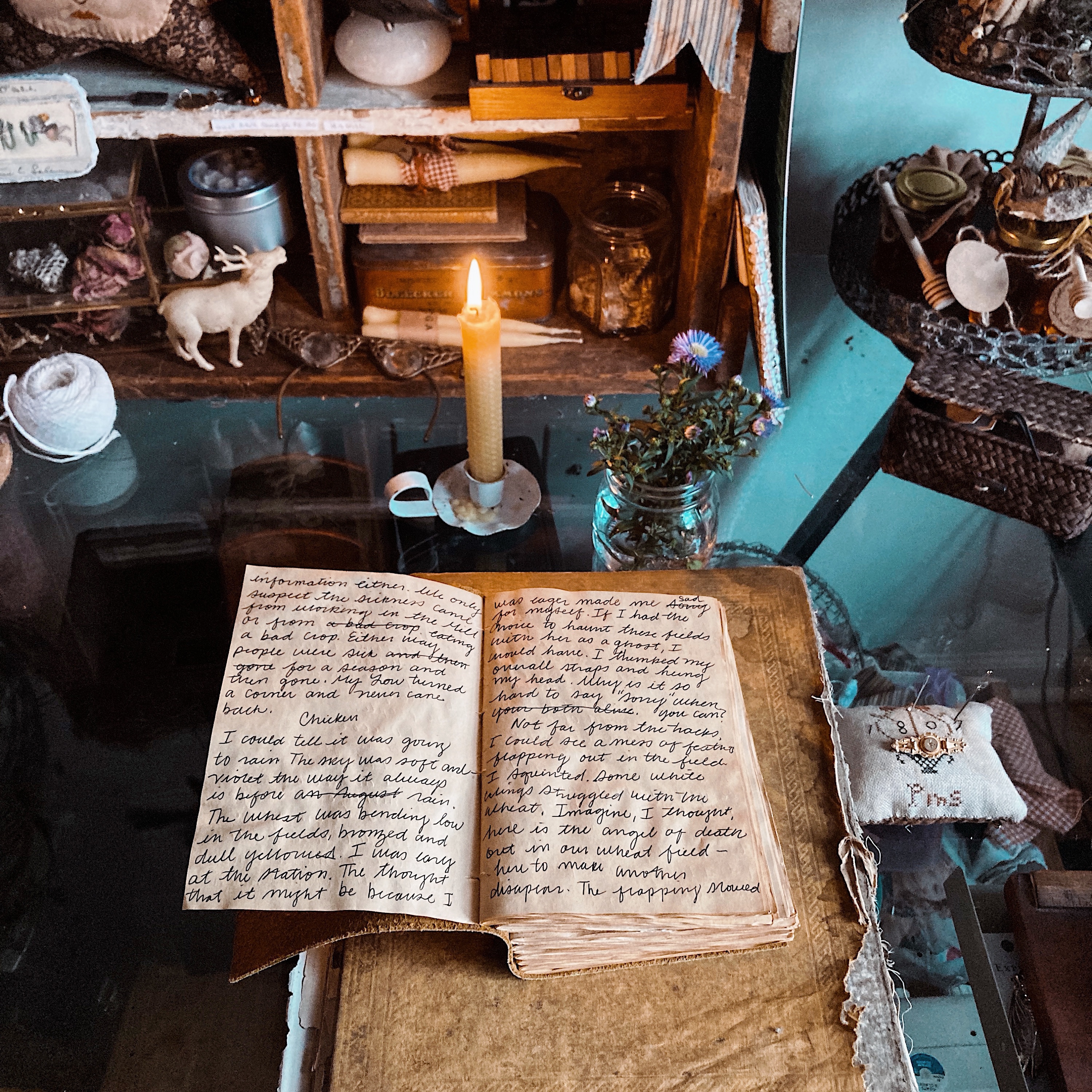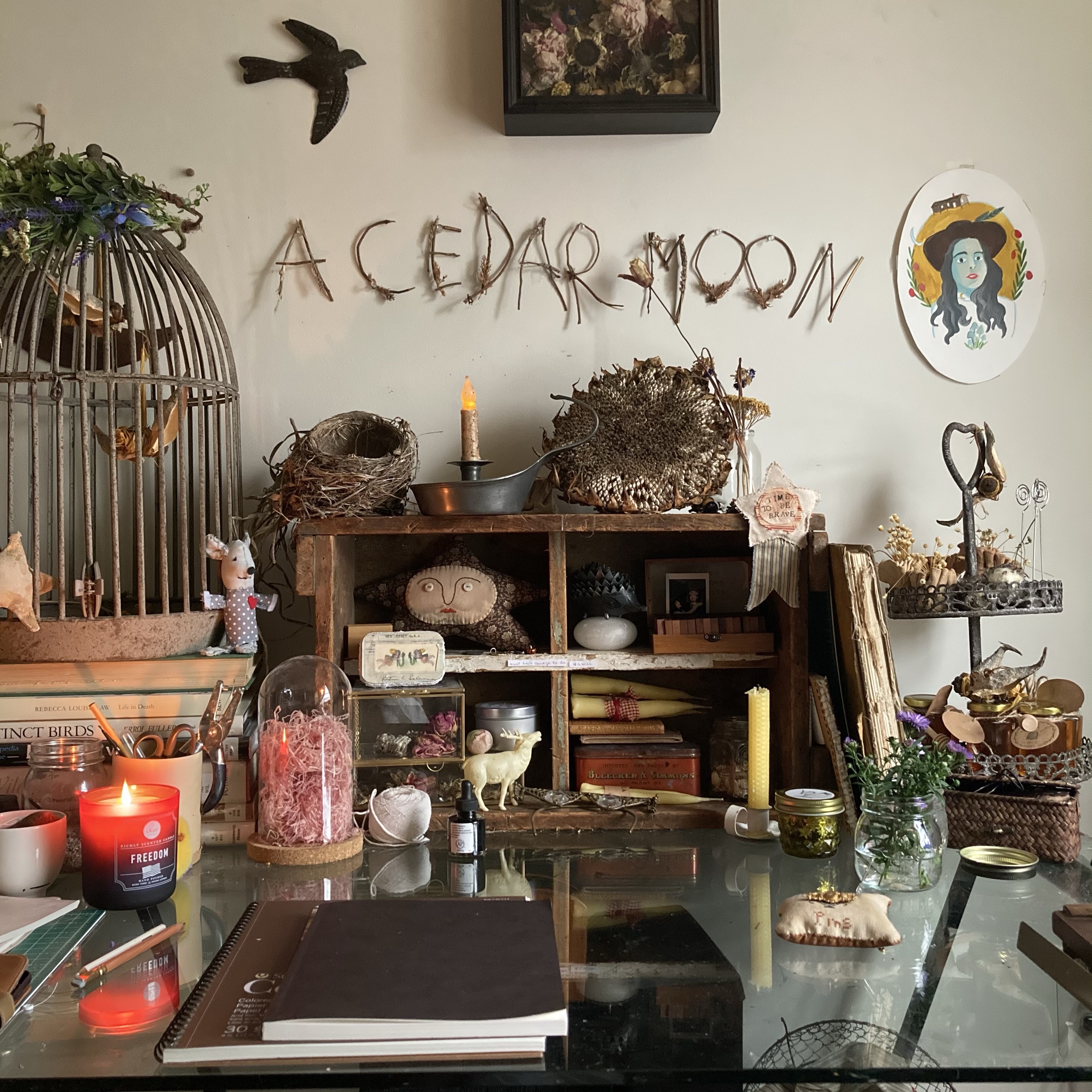 Studio Where I create. It’s quiet here and slow- a soft lullaby strung up in the wind, a mid day nap after soup and a chapter. We are in it heavy and don’t put down our pens.